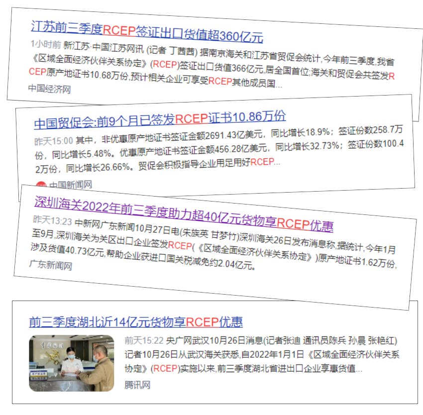最近,全国多地亮出RCEP实施三个季度以来的“成绩单”